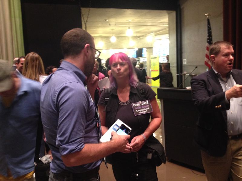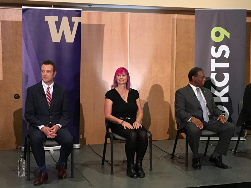 Leslie at the KCTS/Crosscut candidate debate held 25 May at the University of Washington.